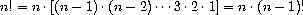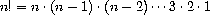 and stipulating that n! is the value of the product when the counter exceeds n.