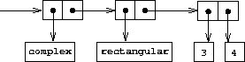 What we have here is a two-level tag system. A typical complex number, such as 3 + 4i in rectangular form, would be represented as shown in figure 2.24. The outer tag (complex) is used to direct the number to the complex package. Once within the complex package, the next tag (rectangular) is used to direct the number to the rectangular package. In a large and complicated system there might be many levels, each interfaced with the next by means of generic operations. As a data object is passed ``downward,'' the outer tag that is used to direct it to the appropriate package is stripped off (by applying contents) and the next level of tag (if any) becomes visible to be used for further dispatching.